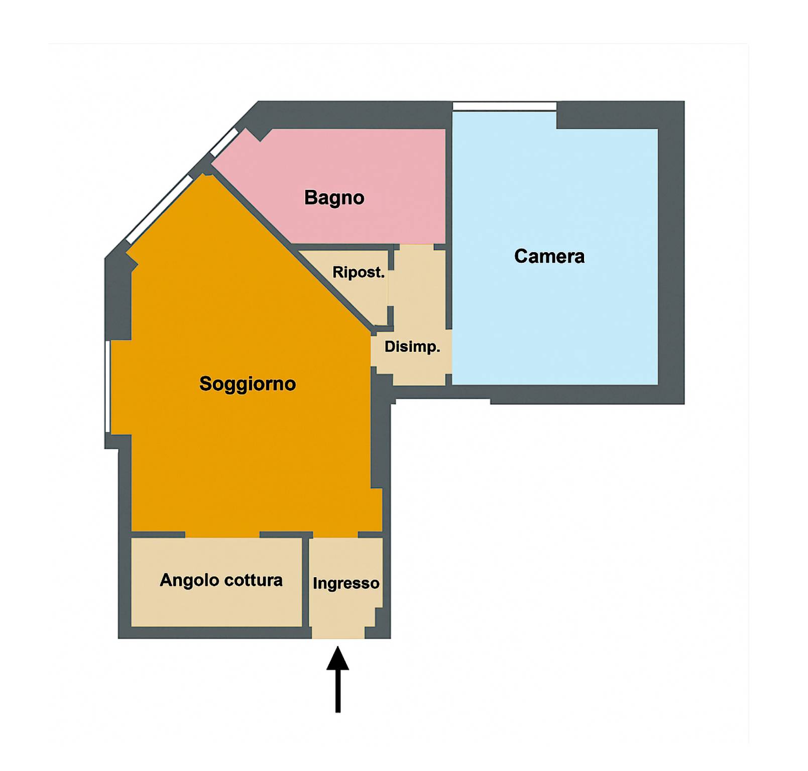 • luminoso soggiorno con due finestre,